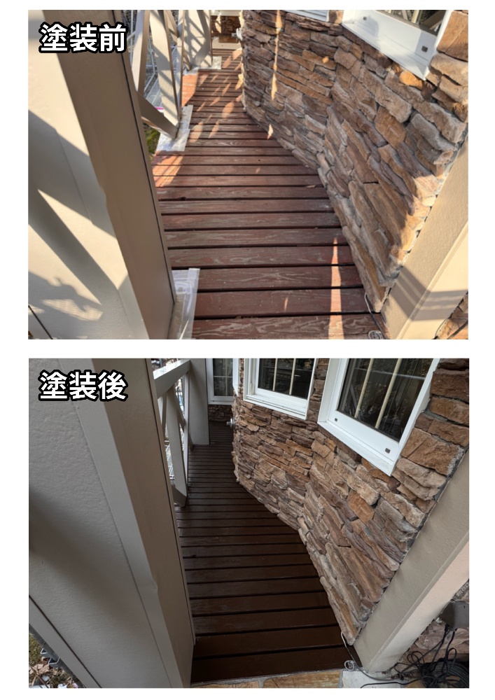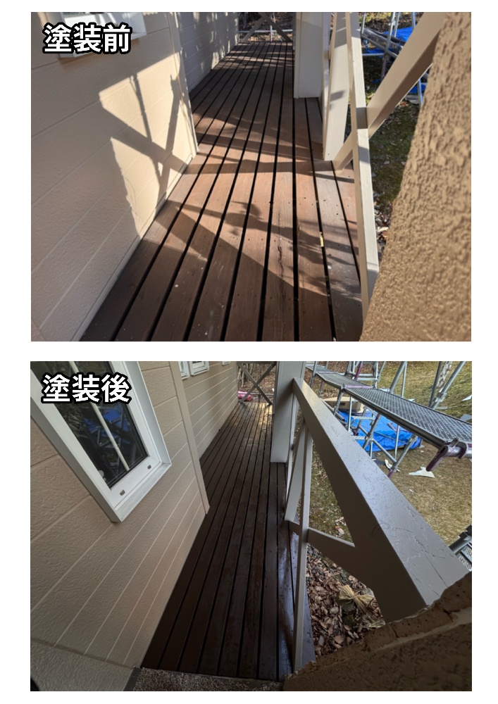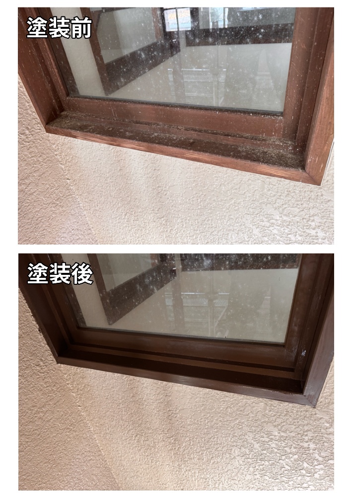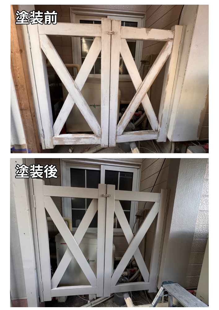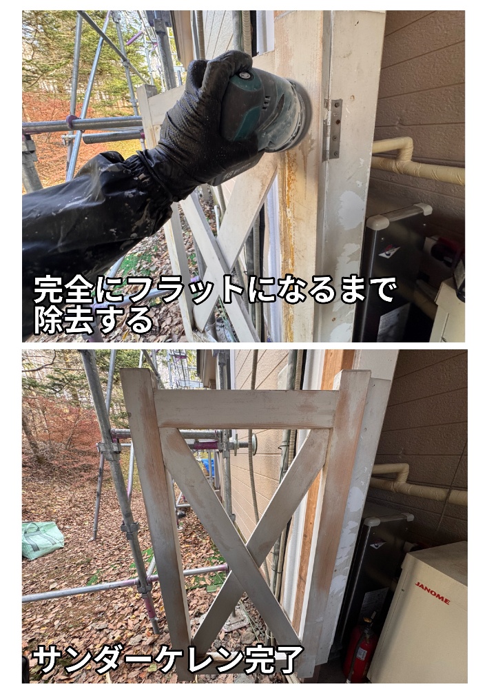 今回の木部は元々ペンキが塗装してあった為劣化によってかなり剥がれが目立っていました。