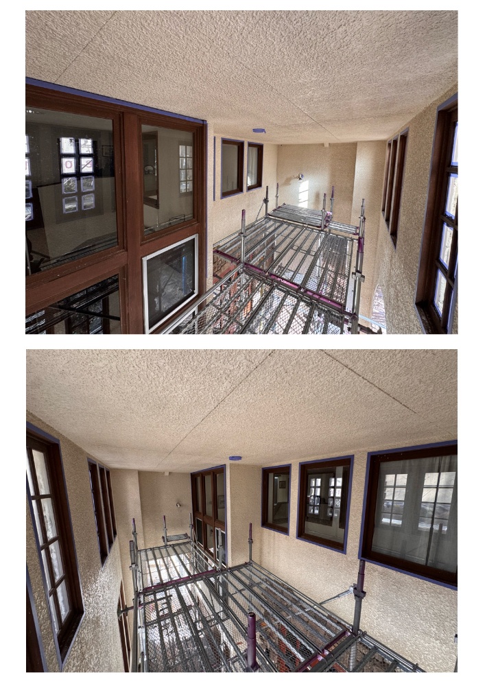 今日は西面と北面の1回外壁の養生と各部補修を行いました。