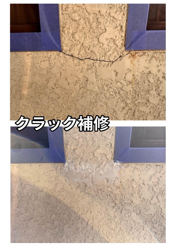 壁の至る所にクラック(ひび割れ)が発生していたためクラック補修を行いました。
