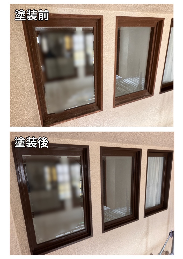 本日は玄関ホールの中の木窓枠を塗装しました。