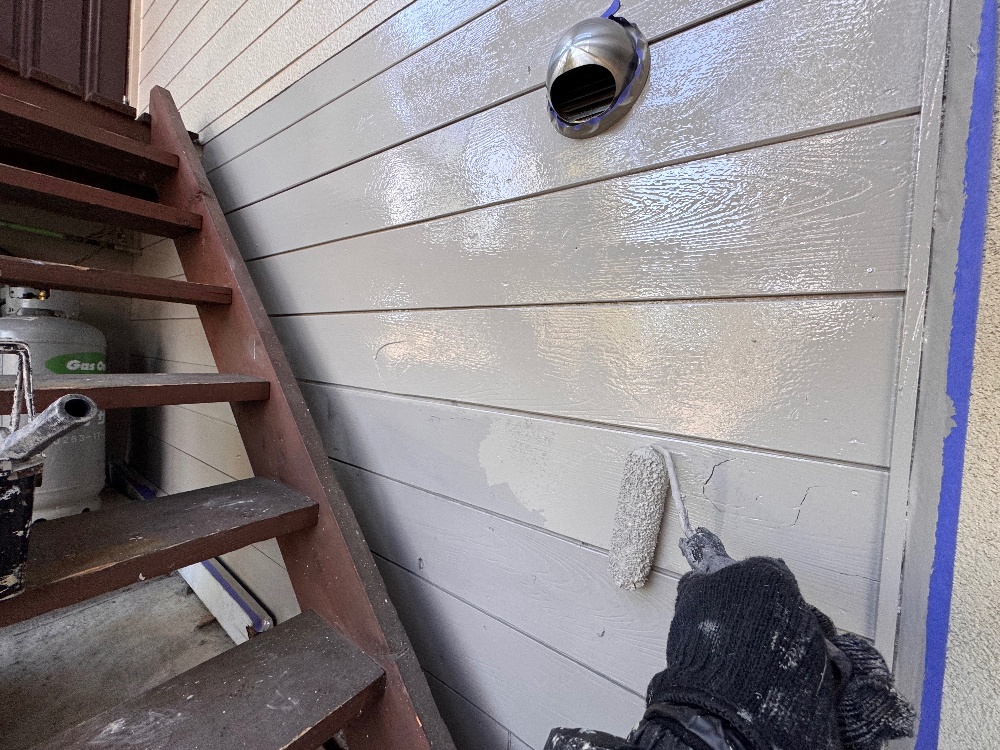 2階の小壁の仕上げ塗装と同時に1階の破風仕上げ塗装も進めました。