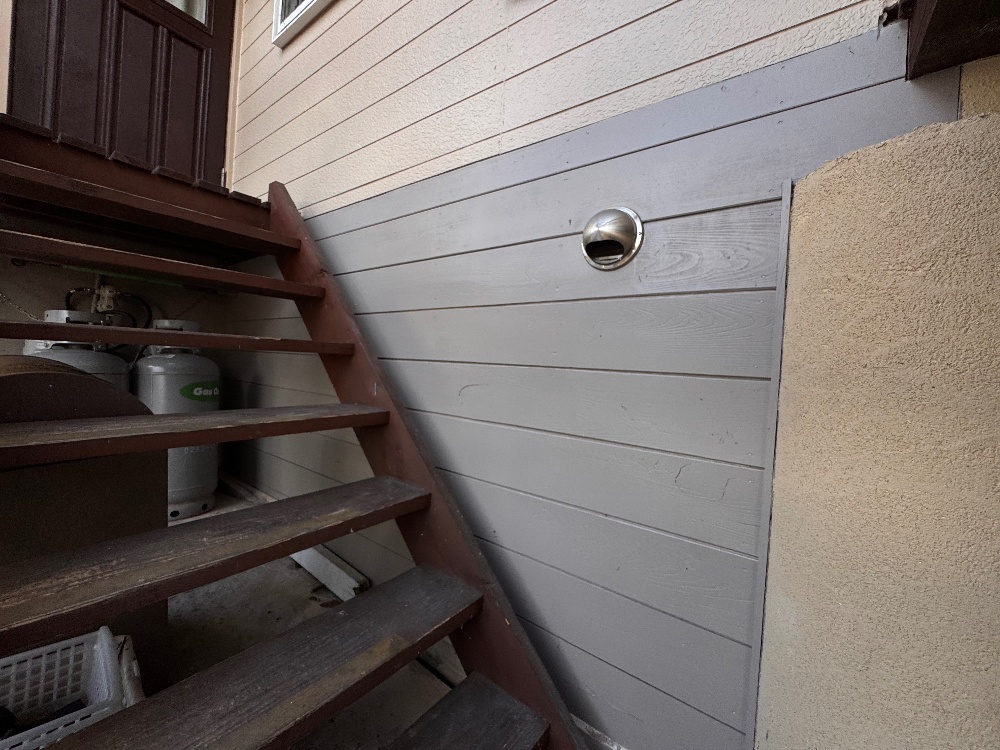 | 外壁の進み具合 フッ素塗装 | ・高圧洗浄完了 ・2階部分完了 ・1階部分北面と東面完了 ・ |