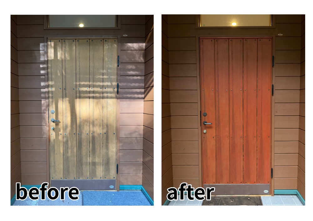 玄関ドアは塗料の吸込みが強かったため合計で4回塗装しました。