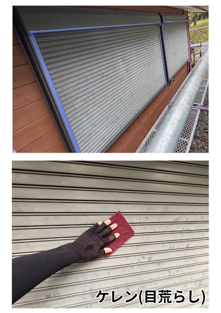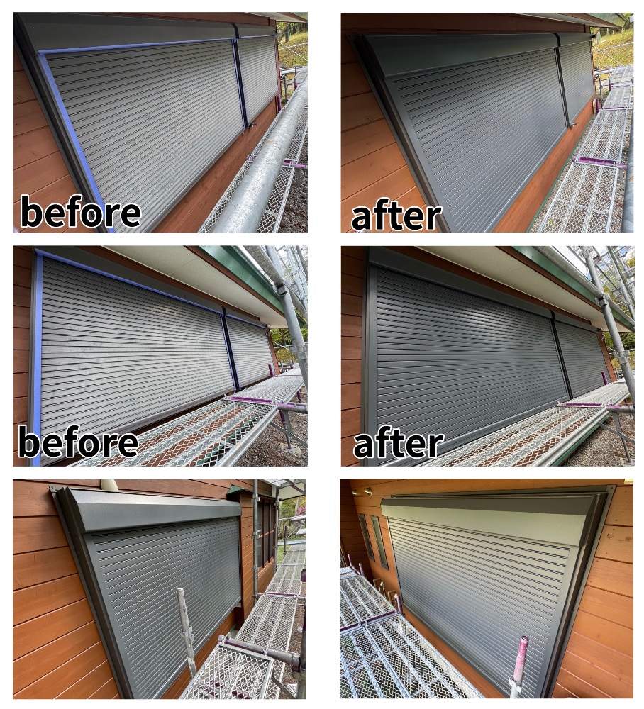 | シャッター 色:ダークグレー 塗料:ウレタン | ・洗浄完了 ・ケレン完了 ・完了 |