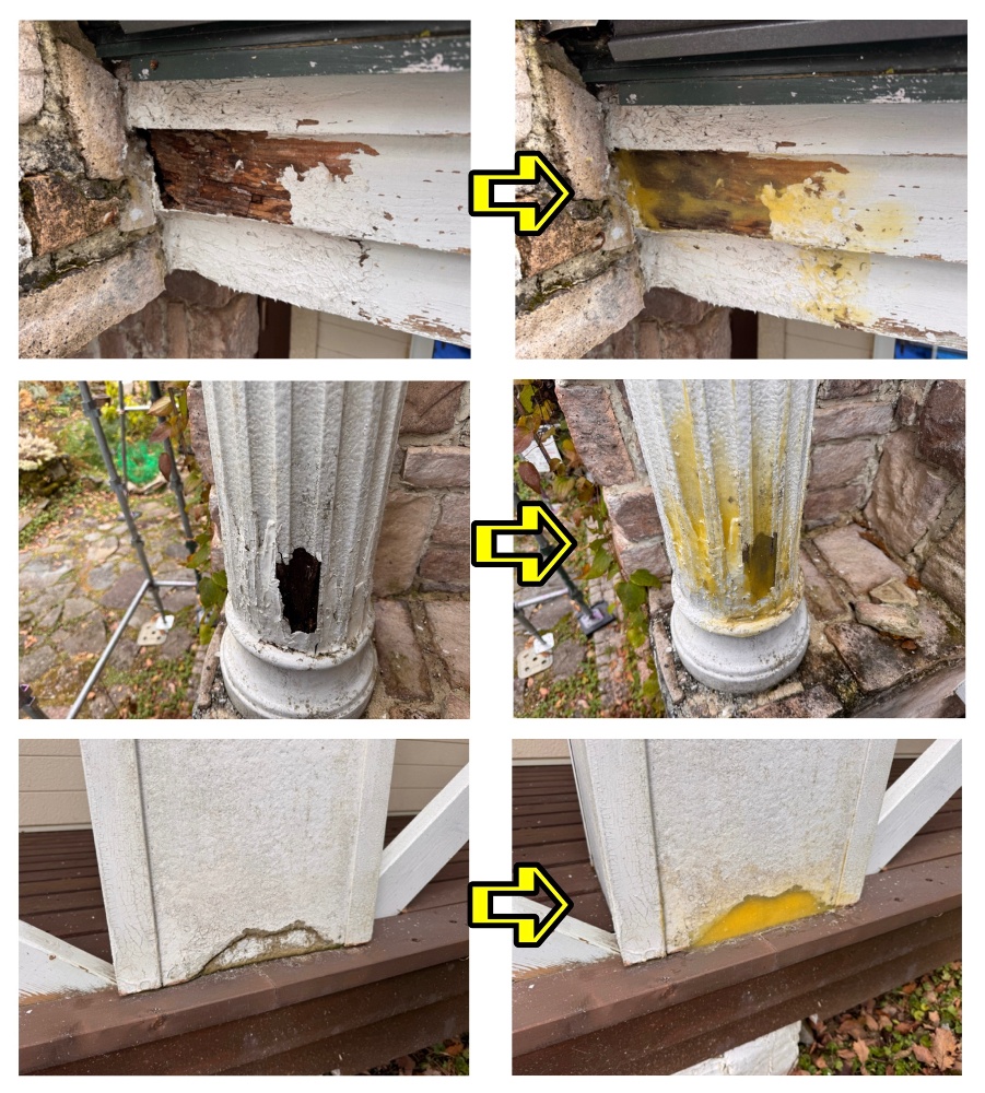 今回の木部は元々ペンキが塗装してあった為劣化によってかなり剥がれが目立っていました。