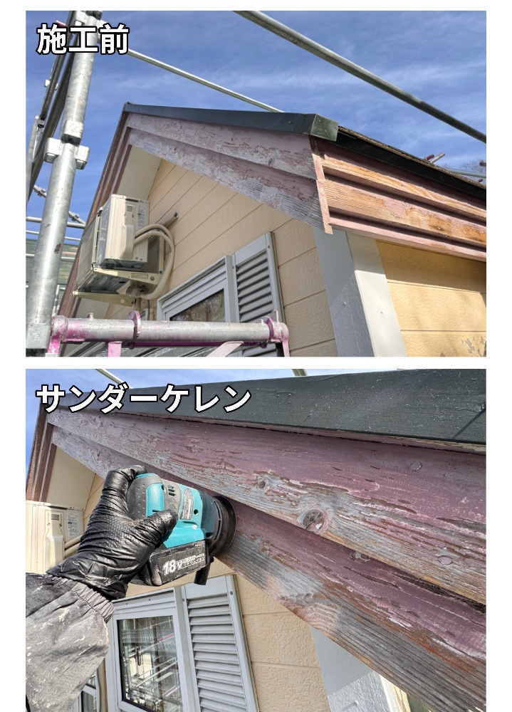 サンダーケレンによって剥がれた塗膜を除去してから3回塗り行いました。