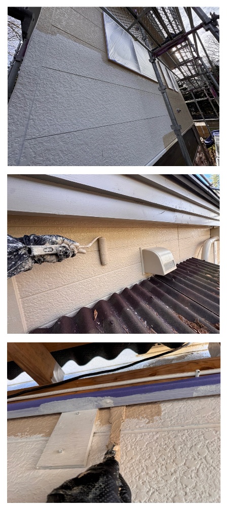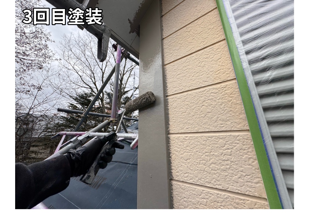 下塗り、中塗り、上塗りの3回塗装を行う事で耐久性のある時膜厚を形成します。