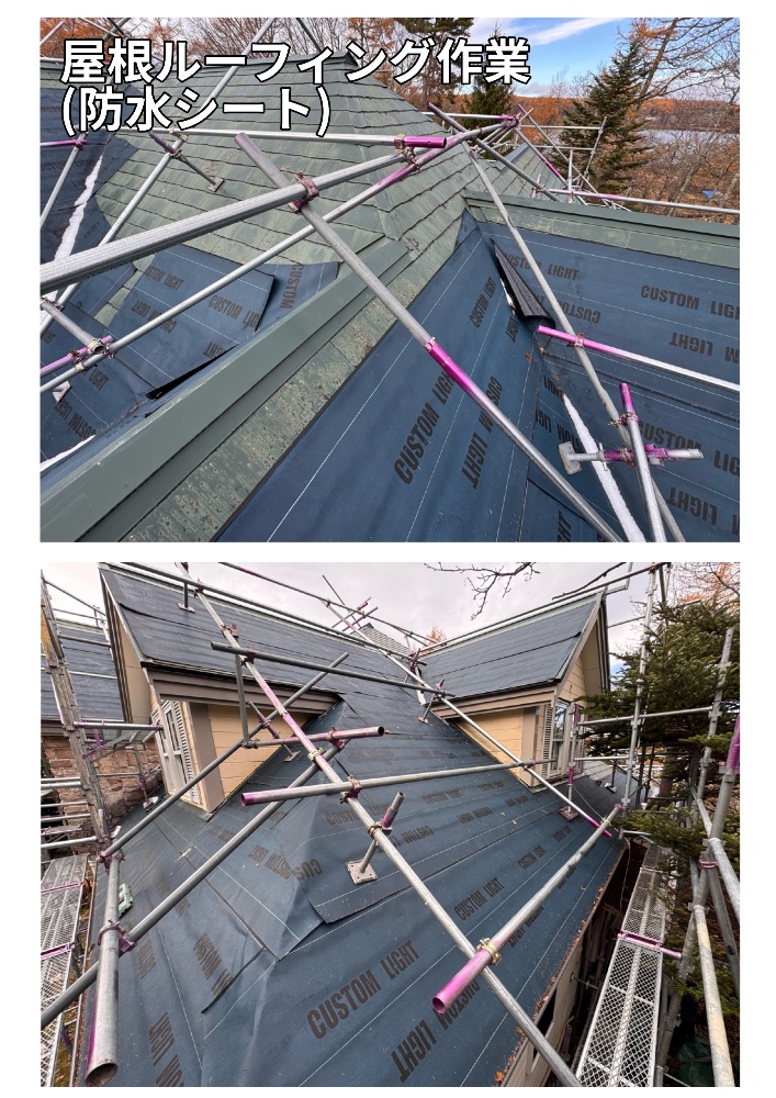 | 屋根の進み具合 葺き替え | スターター取付 防水シート施工完了 ケラバ取り付け |