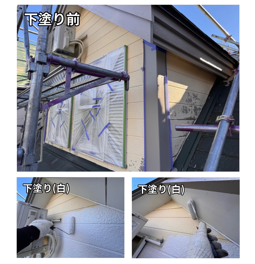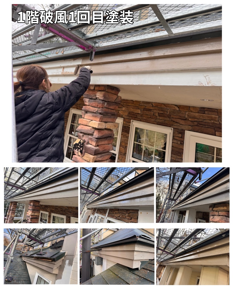 1階破風のケレンが終わったら1回目の塗装を行いました。