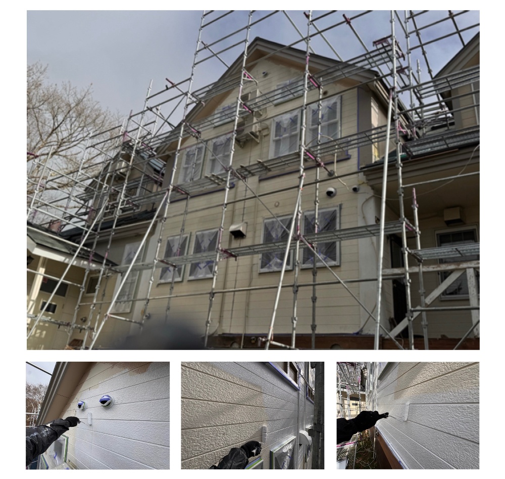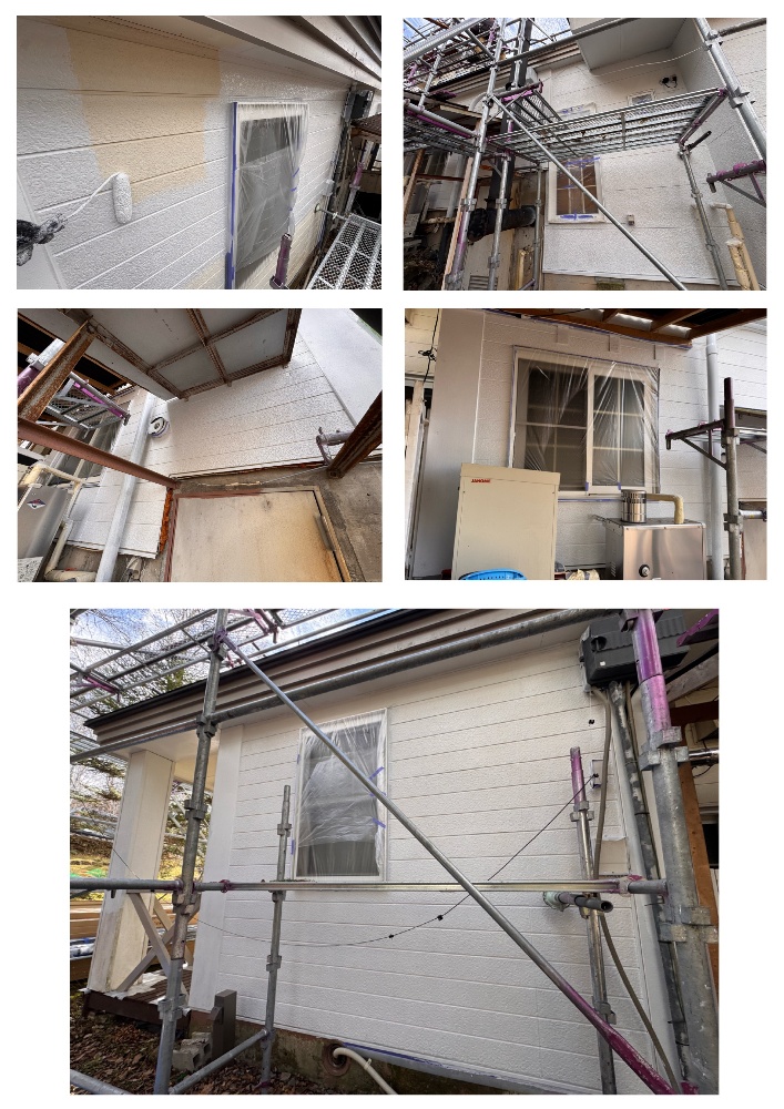 今日は西面と北面の1回外壁の養生と各部補修を行いました。