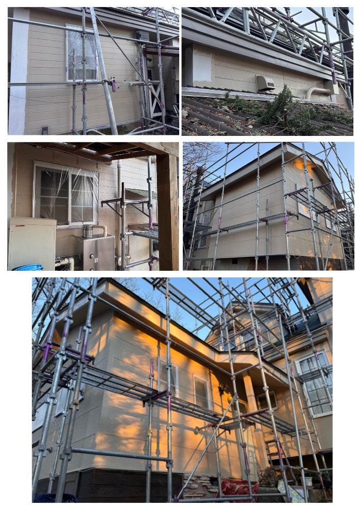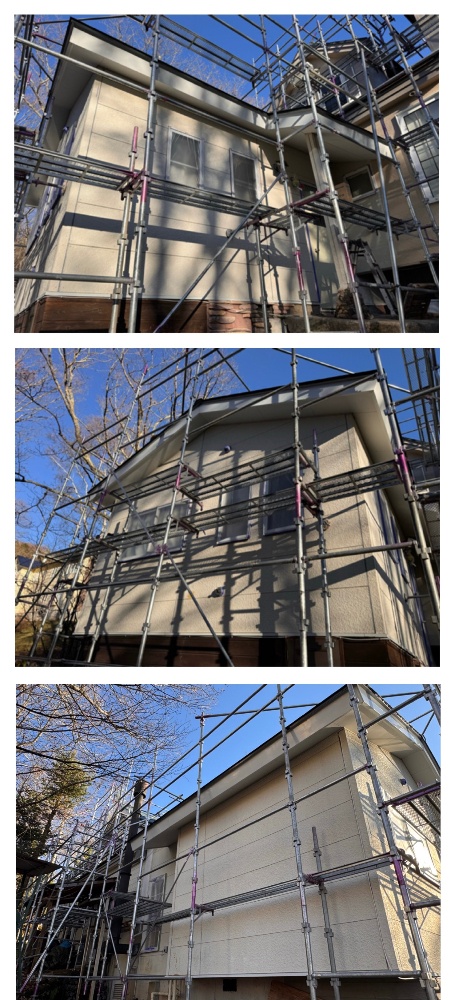 | 報告事項 | 北面と東面の上塗りが終わりました。 東面の入り組んだ外壁が終わりました。 ウッドデッキ周りの木部塗装が施工途中です。 |