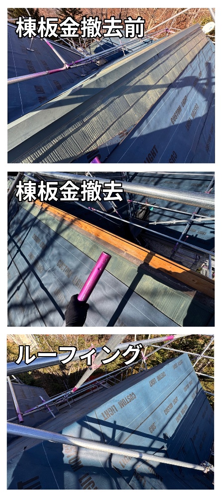 屋根は棟板金を取り外してルーフィングを貼りました。